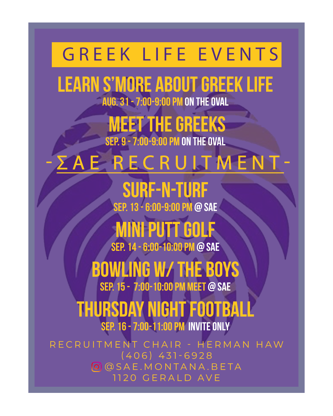 I was recruited in the Spring of 2021 to help rebuild the Sigma Alpha Epsilon Montana Beta Chapter. I served a full year as the fraternity's Vice President and Social Media Chairman but was recently elected President for the 2022-2023 academic year. I have worked every day to help improve our chapter and the community surrounding it.